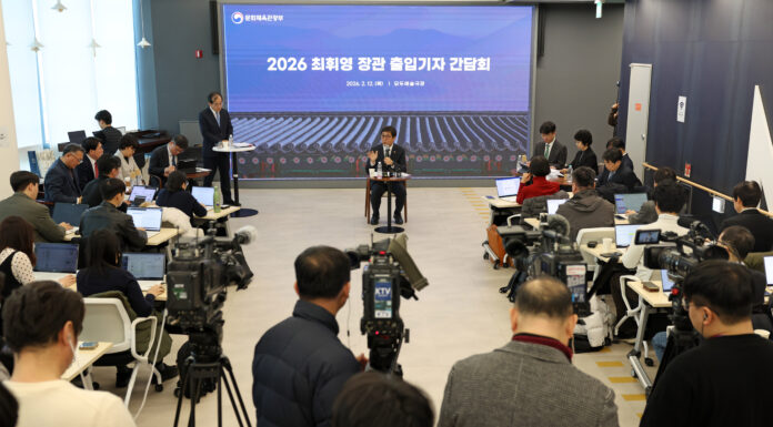 Minister of Culture, Sports and Tourism Chae Hwi-young on Feb. 12 speaks at a news conference held at Modu Art Theater in Seoul's Seodaemun-gu District. (Heo Man-jin from Ministry of Culture, Sports and Tourism)