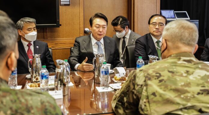 President-elect Yoon Suk Yeol on April 7 holds a meeting with the US Forces Korea (USFK) at Camp Humphreys in Pyeongtaek, Gyeonggi-do Province, with Gen. Paul LaCamera, commander of both the USFK and ROK (Republic of Korea)-U.S.Combined Forces Command and CFC Deputy Commander Kim...