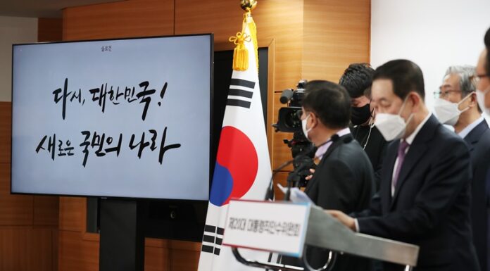 President-elect Yoon Suk Yeol's incoming administration has released its vision for national governance. He is shown here on March 10 holding a news conference at the National Assembly in the Yeouido area of Seoul's Yeongdeungpo-gu District. (Official website of 20th presidential transition committee)