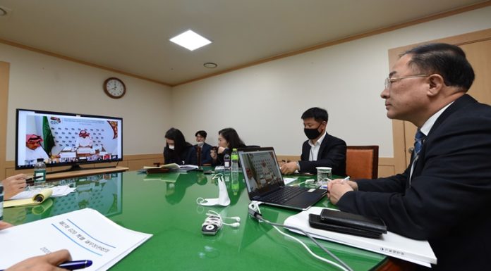 Deputy Prime Minister and Minister of Economy and Finance Hong Nam-ki on March 31 takes part in a videoconference of G-20 finance ministers and central bank governors at Government Complex-Seoul on how member states should respond to the global economic crisis caused by COVID-19....