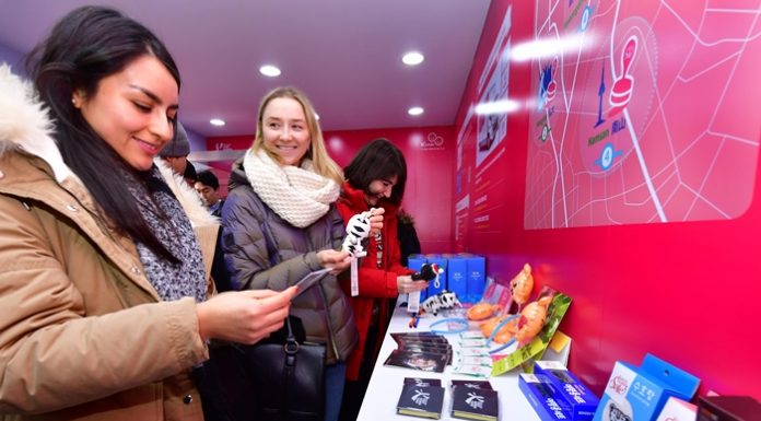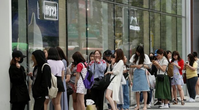 The heightened mood of peace on the Korean Peninsula attracted more foreign tourists to Korea last year. This photo shows Japanese shoppers lined up at the Line Friends store in Seoul’s trendy Hongdae neighborhood to buy BTS goods. (Korea.net DB)
