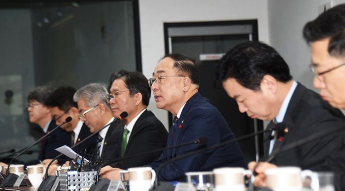 Minister of Economy and Finance Hong Nam-ki on Jan. 16 chairs a meeting on innovative growth strategies at Yangjae Innovation Hub in Seoul. (MOEF)