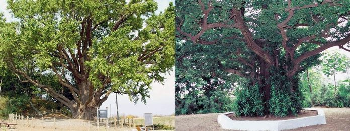 South Korea's Natural Monument No. 304, the Ganghwado ginkgo tree (left), and Natural Monument No. 165 in North Korea, the Yeonan ginkgo tree (right), both stand tall today. (Cultural Heritage Administration)