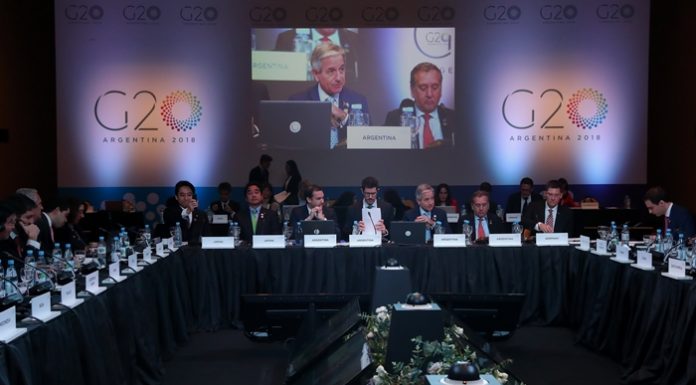 Participants in the G20 Digital Economy Ministerial Meeting discuss ‘A Digital Agenda for Development’ in Salta, Argentina, on Aug. 24. (G20 Argentina Organizing Committee)