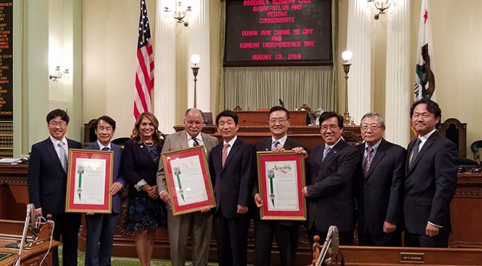 California State Assembly members and officials from the Korean consulate in Los Angeles pose for a photo in LA on Aug. 13. (Consulate general of the Republic of Korea in Los Angeles)