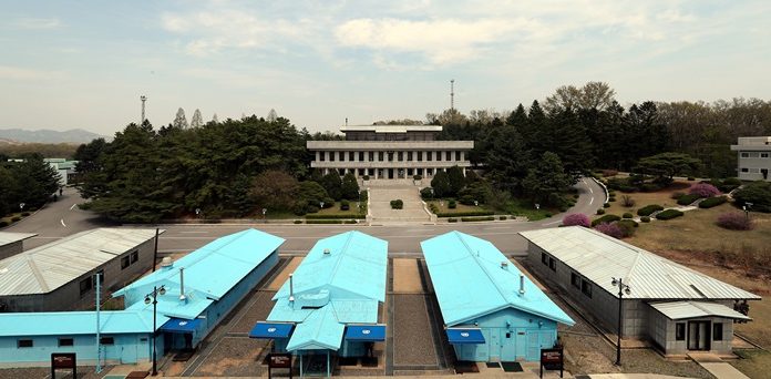 North Korea proposes holding inter-Korean high-level talks at the Thongil House on the northern side of the truce village of Panmunjom on Aug. 13. The photo shows Panmunjeom in April where the last inter-Korean summit took place. (Inter-Korean Summit Press Corps)