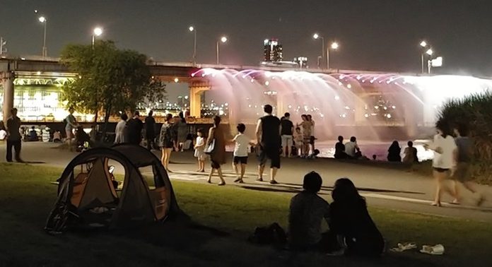 As the national weather administration issues excessive heat warnings for most regions across the country, families visit the Banpo Hangang River Park in the evening on Aug. 4 to cool off from the steaming weather. (Kim Eun-young)