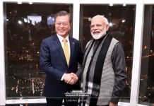 President Moon Jae-in on May 24 congratulated Indian Prime Minister Narendra Modi on his re-election via Facebook. This photo taken in February shows the...