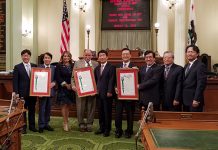 California State Assembly members and officials from the Korean consulate in Los Angeles pose for a photo in LA on Aug. 13. (Consulate general...