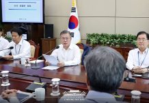 President Moon Jae-in (fourth from left) hosts a Cabinet meeting and proposes the government's new budget for 2019, at Cheong Wa Dae on Aug....