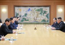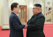 Director of National Security Chung Eui-yong, the head of President Moon Jae-in’s team of special envoys, delivers a letter from President Moon to North...